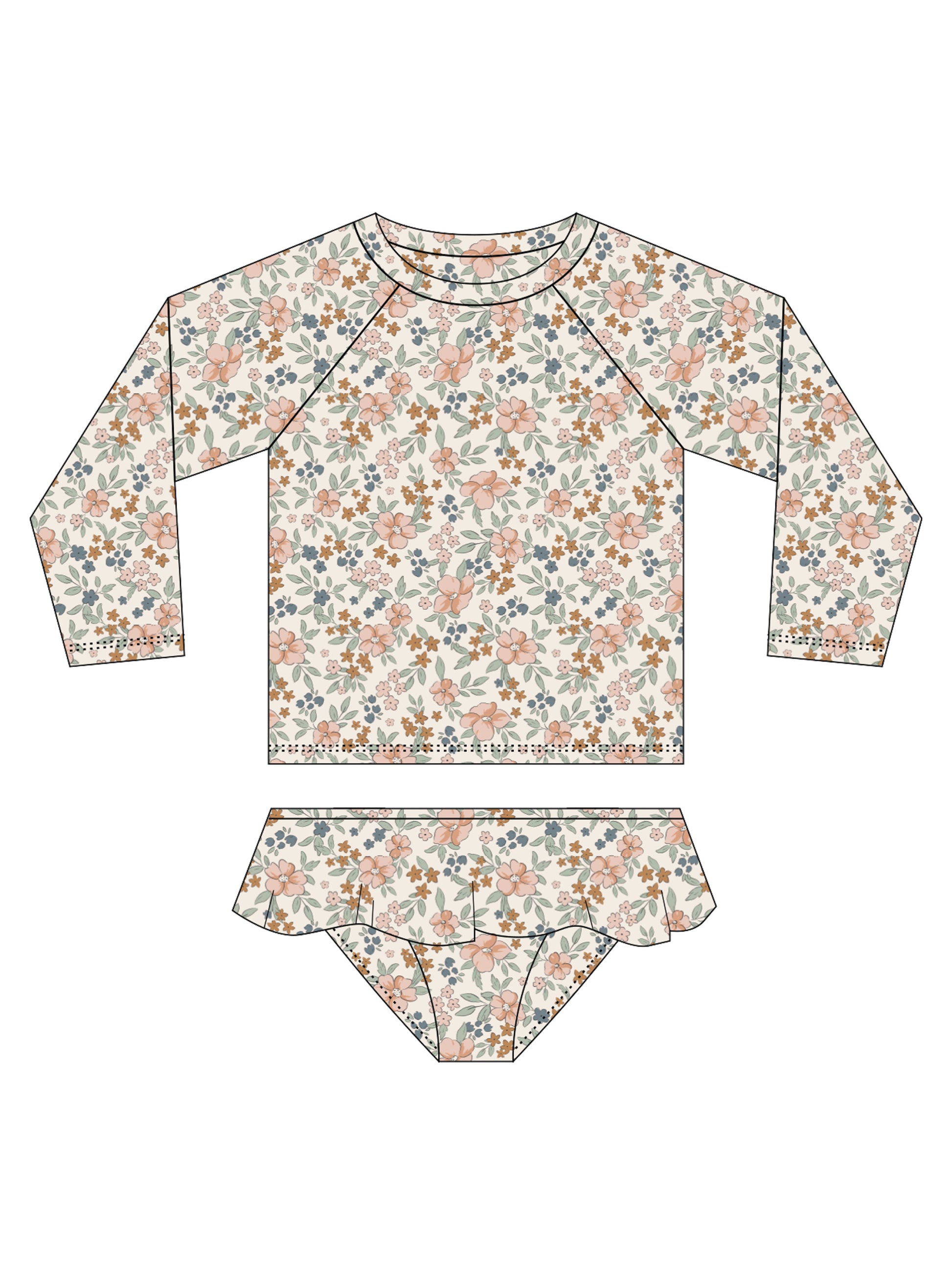 Flower Fields Rashguard Girls Set