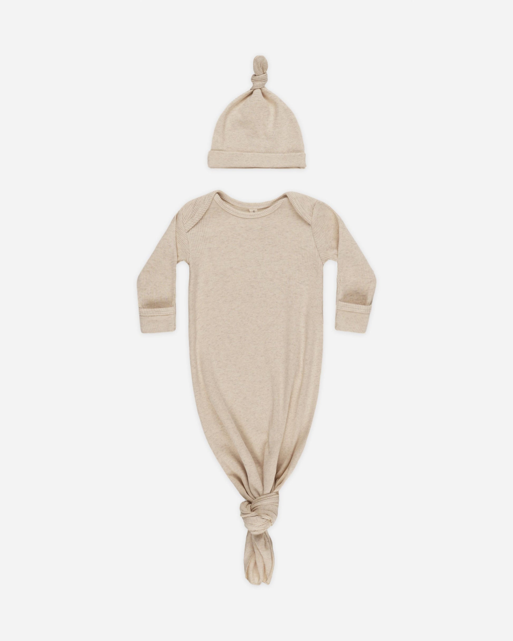 Taupe Knotted Baby Gown + Hat